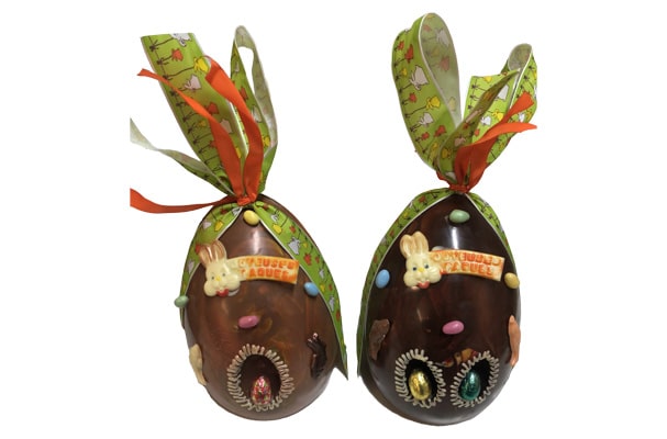 A la période de Pâques, les traditionnels lapins, poissons et volatiles côtoient les plus originaux castors, écureuils, homards, licornes et voitures de course ! Nos moulages au chocolat noir ou chocolat au lait sont parfaits pour la chasse aux œufs des petits ou pour le plaisir des plus grands.